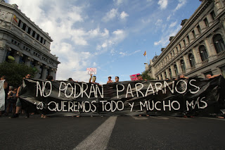 Estrategias organizativas que han sido asumidos y defendidos desde el inicio del movimiento por miles de personas que parten de cero en las luchas sociales, sin una trayectoria militante pero con el suficiente sentido común y deseo de ser por primera vez protagonistas y no espectadores en la lucha por el cambio social. Y es aqui donde realmente me sorprende y cautiva este resurgir de la protesta social, como una forma, digamos casi inherente a la articulación del descontento y la rabia, ha brotado un movimiento que asume como premisa basica todos estos elementos de la cultura libertaria.
